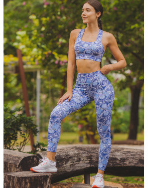 Work out in a stunning shade of heritage blue. This pair of batik print leggings sculpts and compresses, taking you from workout to street effortlessly.