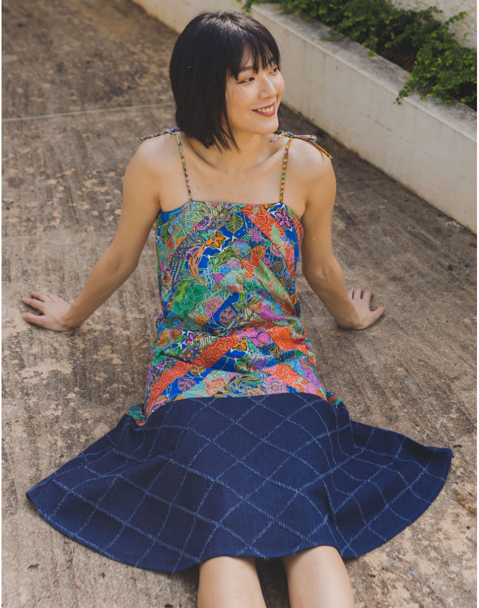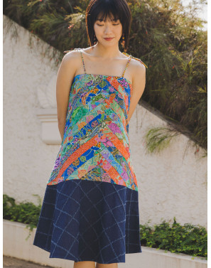 Make a chic statement in our newest gold line batik denim dress. It's a sure style win!