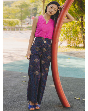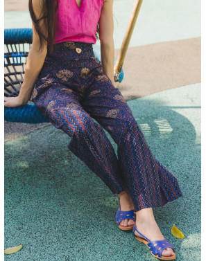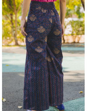 Two print, block-print palazzo pants in a flattering high waist fit.