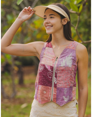 Up to the minute style change with this versatile vest that can be worn on its own, over a tank, or on reverse! Yes, you can be fickle minded with this!