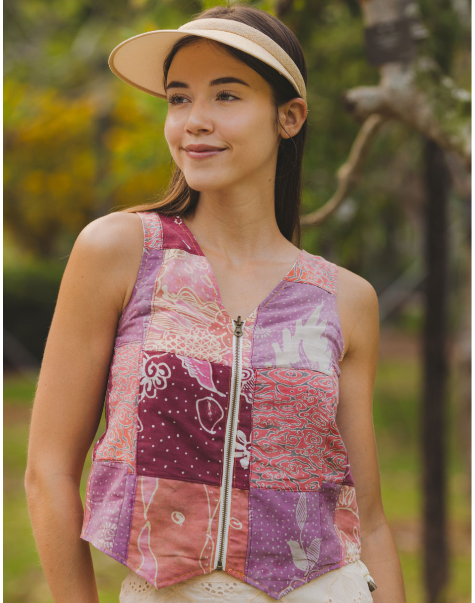 - Batik Vintage. 100% Cotton. Two-Sided. Uneven Hemline In Front. Back Opening. Open Zip.