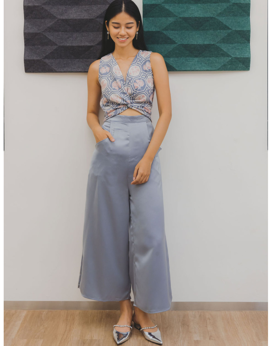 With a cheeky peek-a-boo waist that accentuates your silhouette, this luxurious batik dobby jumpsuit creates an alluring look for any occasion. Whether you're stepping into a cocktail party or enjoying a night out, this jumpsuit ensures all eyes are on you.
