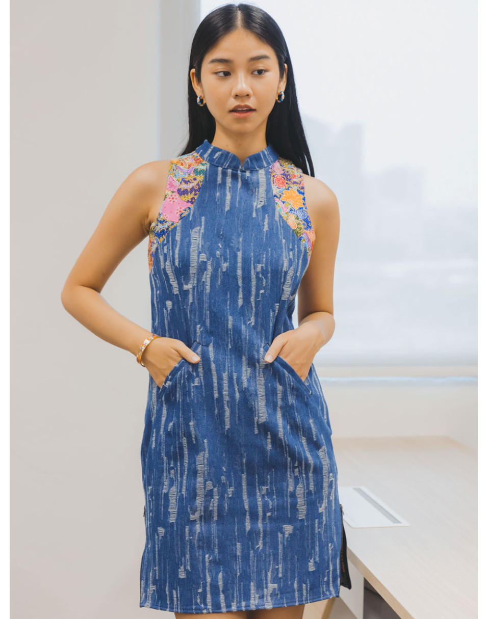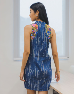 A perfect fusion of edgy modernity and traditional elegance. This unique piece features intricate batik elements that add a touch of cultural richness, while the distressed denim fabric brings an urban vibe to your outfit.