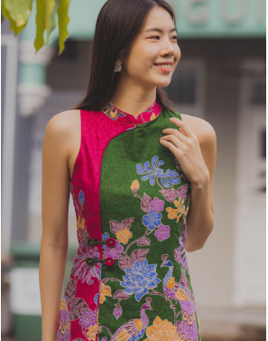 Featuring a stunning peacock print that exudes timeless elegance, this cheongsam celebrates the rich cultural heritage of the East, while offering a contemporary twist for today’s fashion-forward woman.