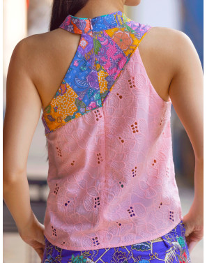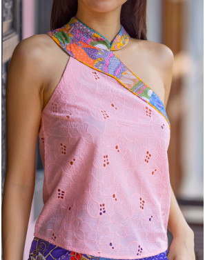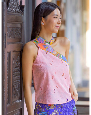 With its sophisticated cheongsam neckline and flattering toga-style drape, this sensual embroidered tank is an effortlessly chic fusion of classic and contemporary.