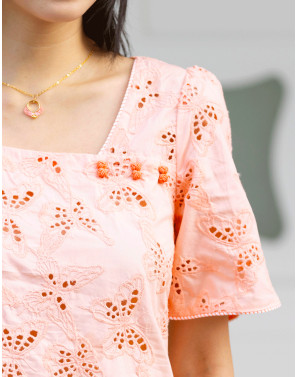 With intricate butterfly embroidery eyelets and subtle oriental influences, this ethereal palette creates a look that is both graceful and timeless. Whether you are dressing up or looking for something casual, this whimsy design will elevate any look, giving it a unique, worldly charm.