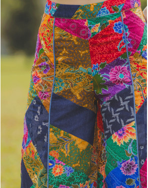These cheeky denim batik culottes are not just a piece of clothing—they’re a declaration of boldness. With their unique blend of classic denim and artsy batik, they’re designed for the woman who’s unapologetic, fearless, and always on-trend.