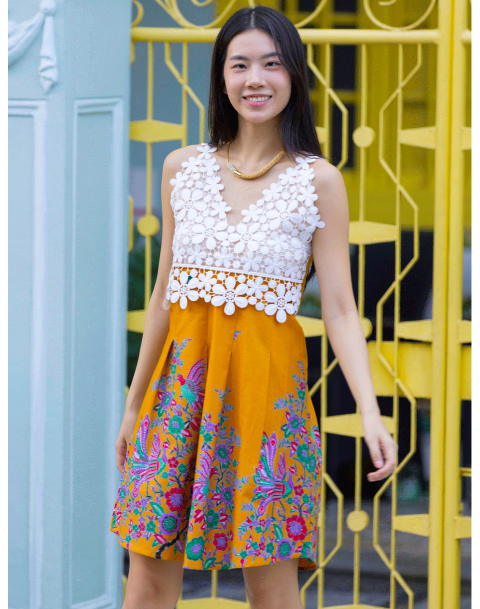 Meet your sunshine-ready essential: a dreamy lace & batik flare dress that’s as pretty as it is playful. With a flattering flare cut, delicate lace accents, and batik patterns, this dress was made for warm breezes, golden hours, and spontaneous twirls.