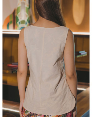 Meet your new favorite travel companion! Designed for humid days and spontaneous adventures, this tunic offers two distinct moods in one breezy, breathable silhouette. A dreamy collage of pastel batik patchwork on one side that is soft, artistic and full of character.  Flip it, and you’ll find a delicate neutral-toned embroidered cotton, understated yet quietly elegant. The drop sleeve hole detail adds a contemporary touch, allowing for fluid movement and an easy fit.