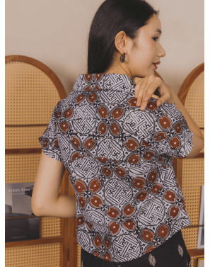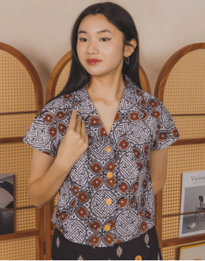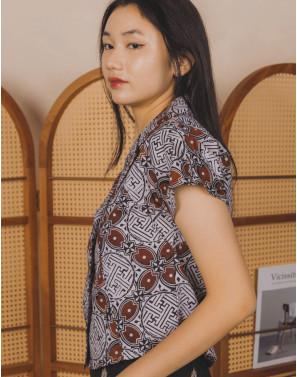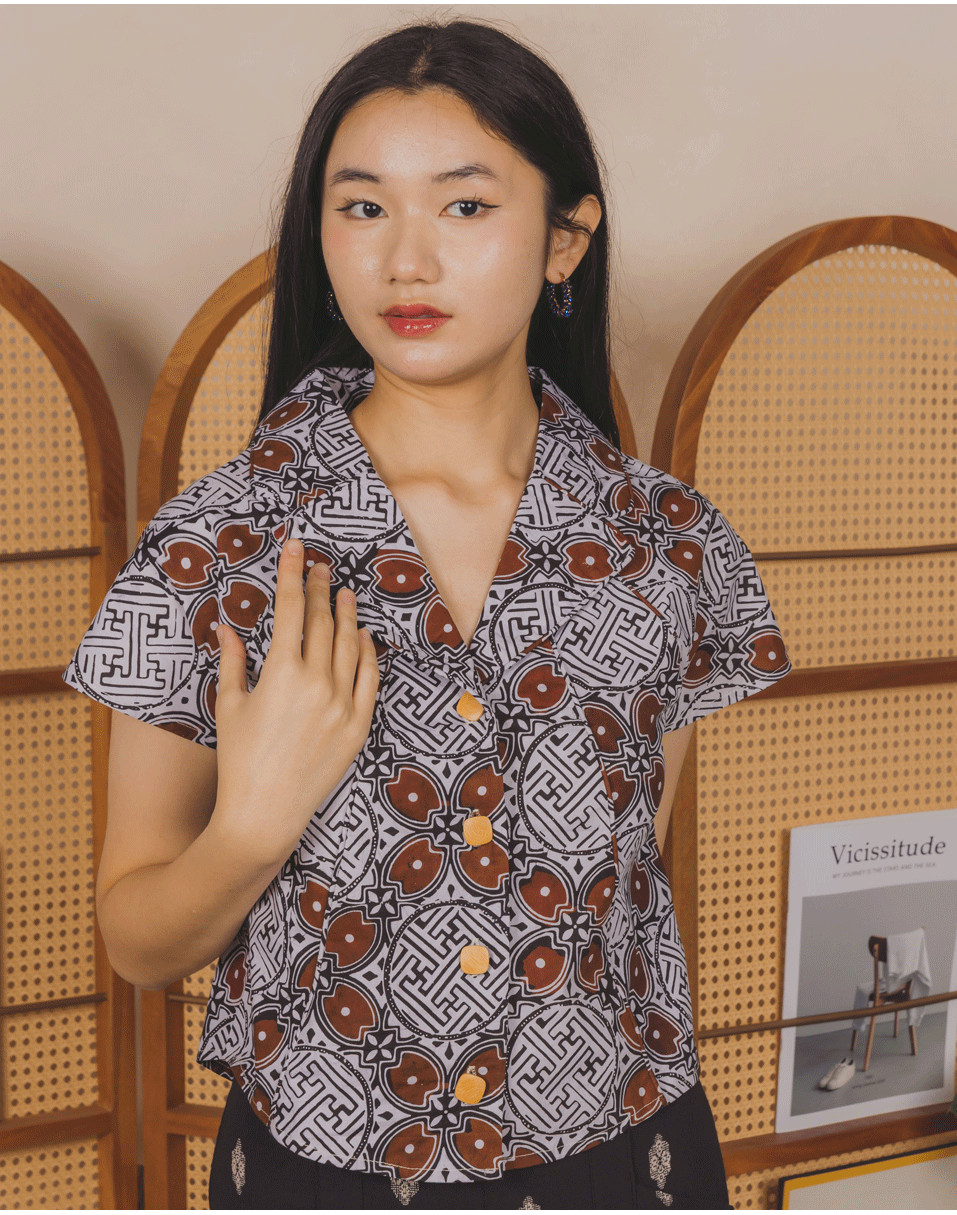 A batik cap sleeve blouse with a vintage double lapel collar and button down charm. It's got the heritage feels, the cute factor, and all the summer-ready vibes. Loose, breezy, and super easy to style — your new go-to for staying cool while looking hot.