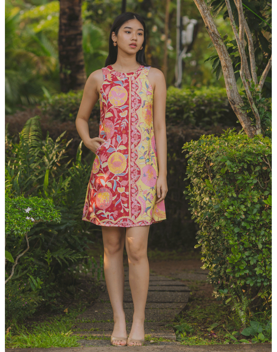 Make an entrance without even trying. This batik print dress is designed for the woman who loves to shine. Crafted from a low-maintenance, low-crease fabric that keeps you flawless from day to night, the rich batik motifs lend heritage charm, while the luxurious finish and fluid silhouette radiate pure sophistication.