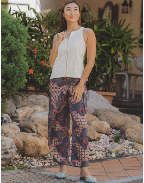 Slip into these soft batik pants that exude understated luxury and a universally flattering fit. Featuring an abstract batik motif that beautifully fuses tradition with modern flair — and best of all, it’s non-crease. Designed for the woman on the go, this versatile piece transitions seamlessly from work to weekend, keeping you polished and comfortable all day long.
