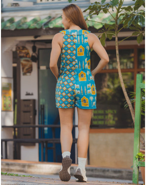 A vintage style romper with Indian block prints and whimsical animal motifs, made for sunny days, playful hearts, and humidity friendly comfort.