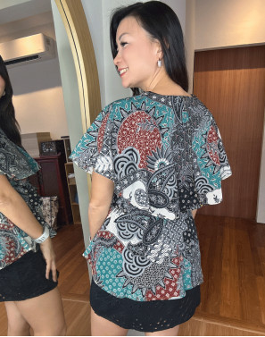 A dreamy blend of batik and bohemian charm. This cape blouse floats beautifully with every step, and the adjustable waist sash gives you that snatched waist moment. Airy, flattering and iconic, your go-to from casual to glam.