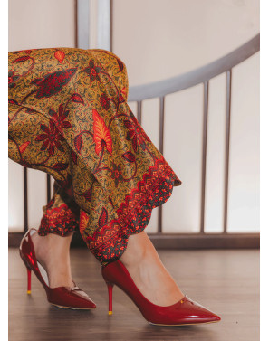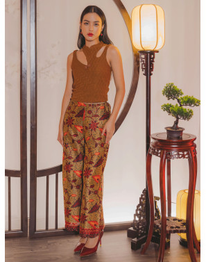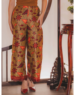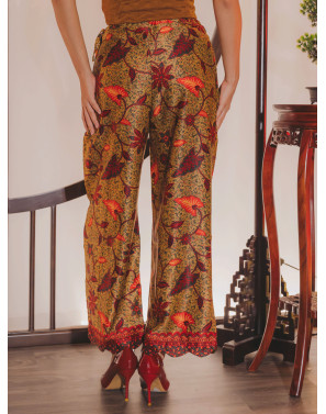 Luxurious gold batik finished with a beautifully scalloped hem. A piece that marries classic elegance with rich heritage, celebrating the timeless artistry of traditional batik.