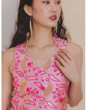 A graceful fusion of Chinese and Indian artistry, sculpted on a flattering silhouette. Rare, radiant, and kissed with pastel brilliance and bling.