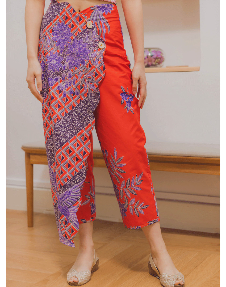 Love the look of a sarong skirt but not the restricted movement? Who says tomboys can’t be feminine too? Meet the sarong pants you’ll fall hard for. Designed with scalloped details and bold colours, they’re the perfect answer to heritage dressing—easy, effortless, and full of style.