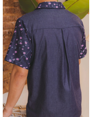 Grunge style but make it heritage. With rose applique on soft denim, this shirt with metal studs is rocker style with elements of heritage charm. Standout individually or as a couple in this one of a kind statement look that you can find nowhere else but at utopia.