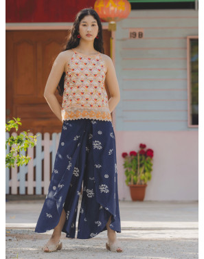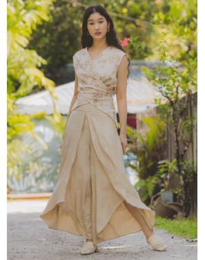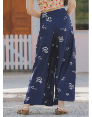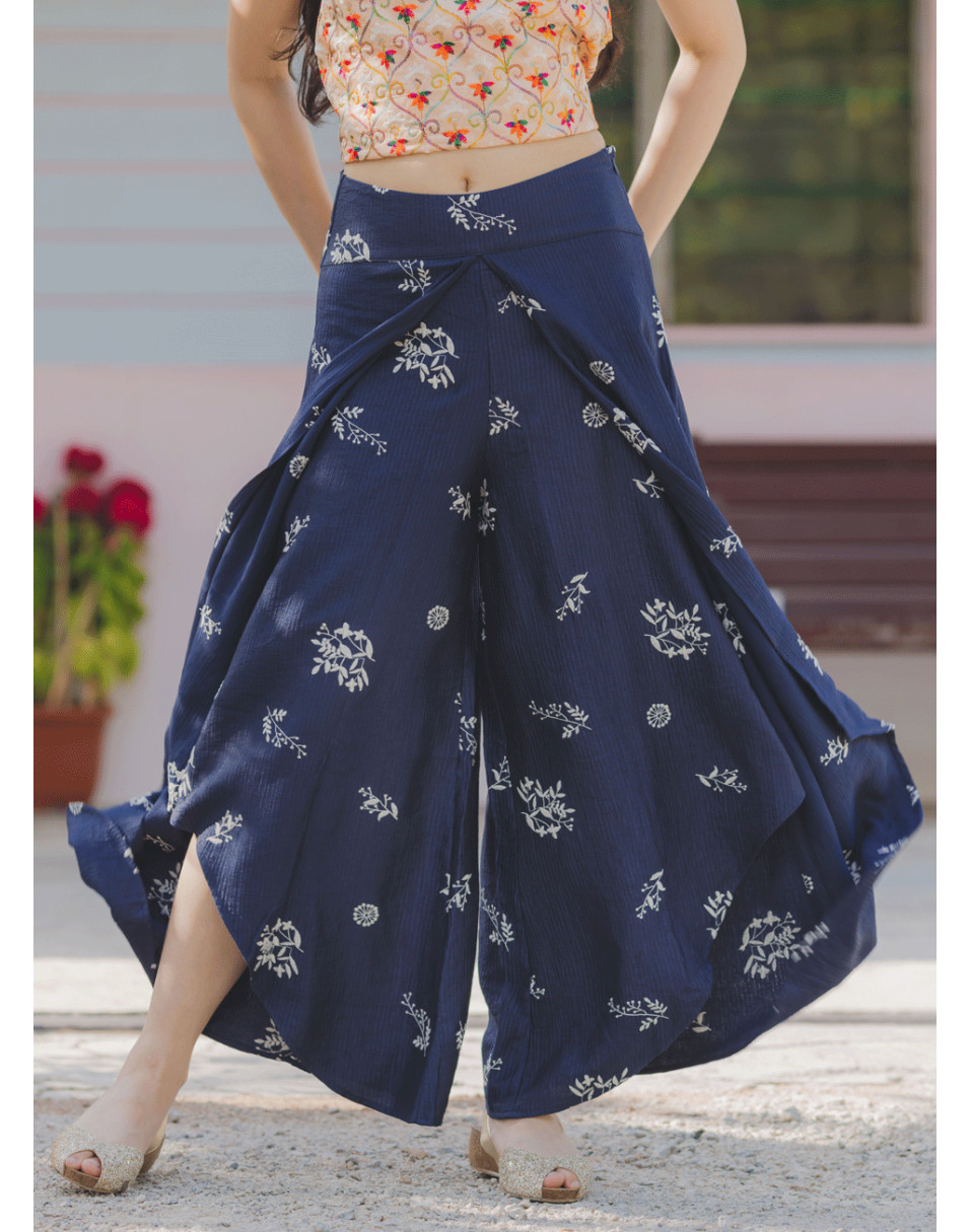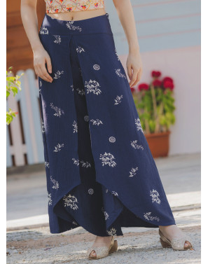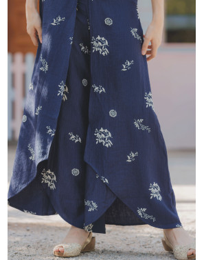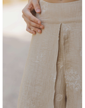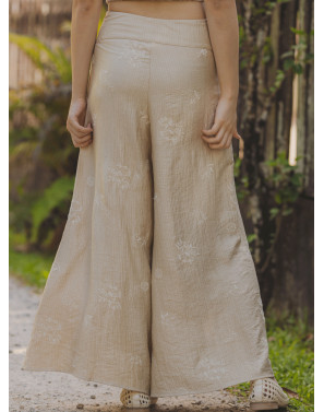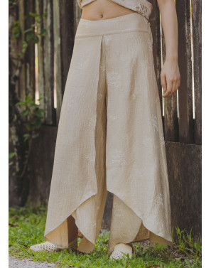 Crafted in a drapey crinkled fabric, these overlap pants move effortlessly with you, catching light with a soft, understated sheen. Delicate embroidery adds quiet texture and depth, bringing interest without overwhelming its refined simplicity.