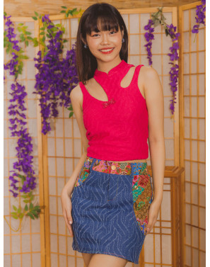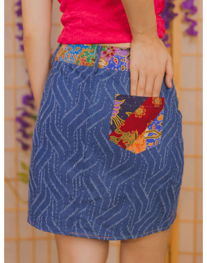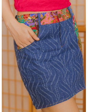 Distressed denim meets batik patchwork in a skort designed to surprise. Finished with a subtle high-low hem, it delivers an effortlessly smart-casual look from day to night. The contouring silhouette skims and shapes the hips, offering both comfort and versatility in a piece that moves seamlessly across occasions.